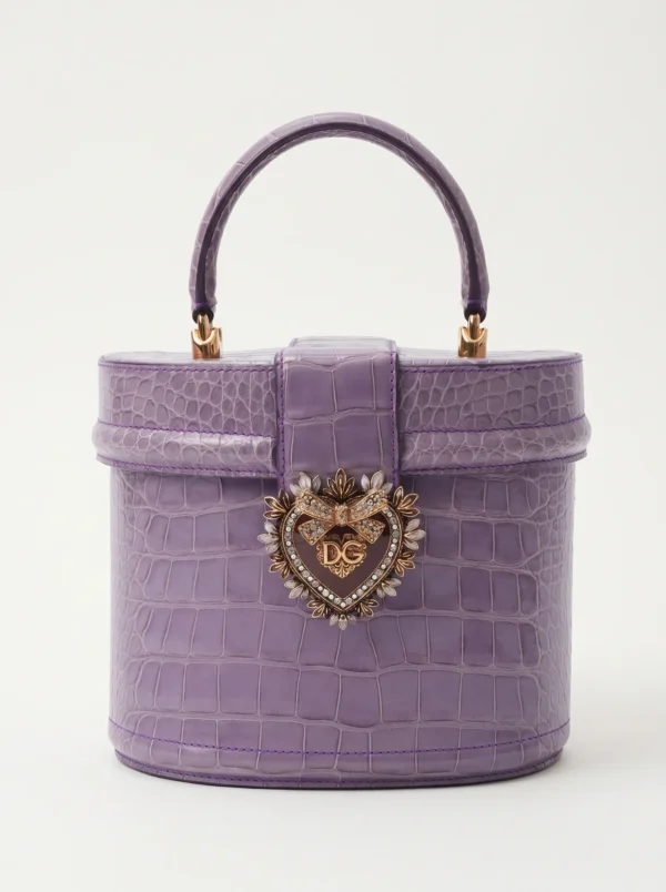 The Dolce & Gabbana Alligator Devotion Top Handle Bag embodies the house’s distinctive approach to ornamentation, where expressive detailing is grounded in exceptional craftsmanship.