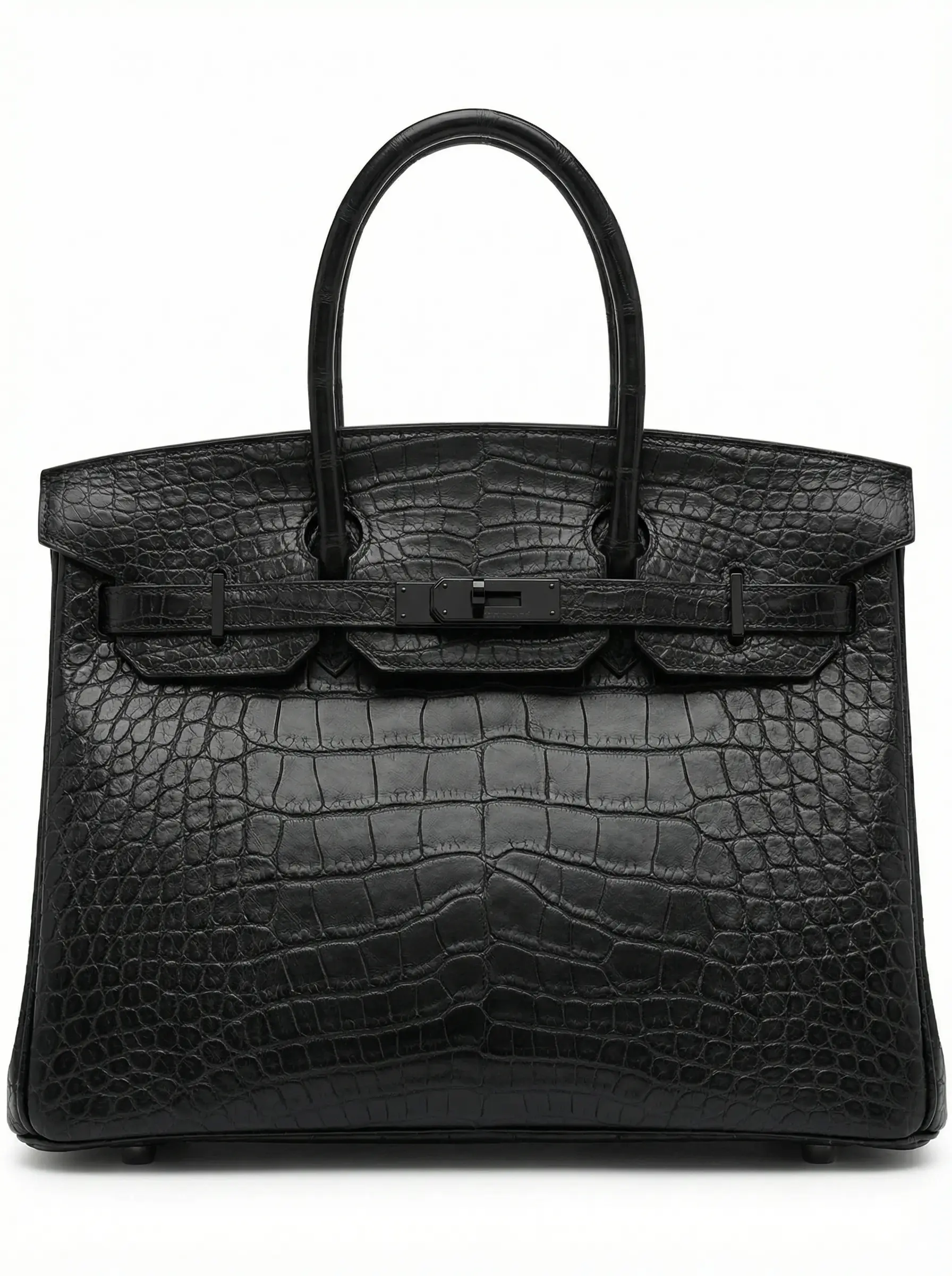 The Hermès Birkin 35 So Black Matte Alligator is one of the most iconic and sought-after collector handbags ever produced by Hermès. Crafted from luxurious matte alligator leather and finished with rare black PVD hardware, this piece embodies the understated yet powerful aesthetic of the legendary “So Black” collection.