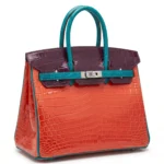 The Hermès Birkin Tricolor Crocodile is a rare and visually striking interpretation of the iconic Birkin silhouette, crafted from luxurious crocodile leather in a bold combination of contrasting colors. This unique design showcases Hermès’ exceptional mastery of both exotic materials and sophisticated color composition.