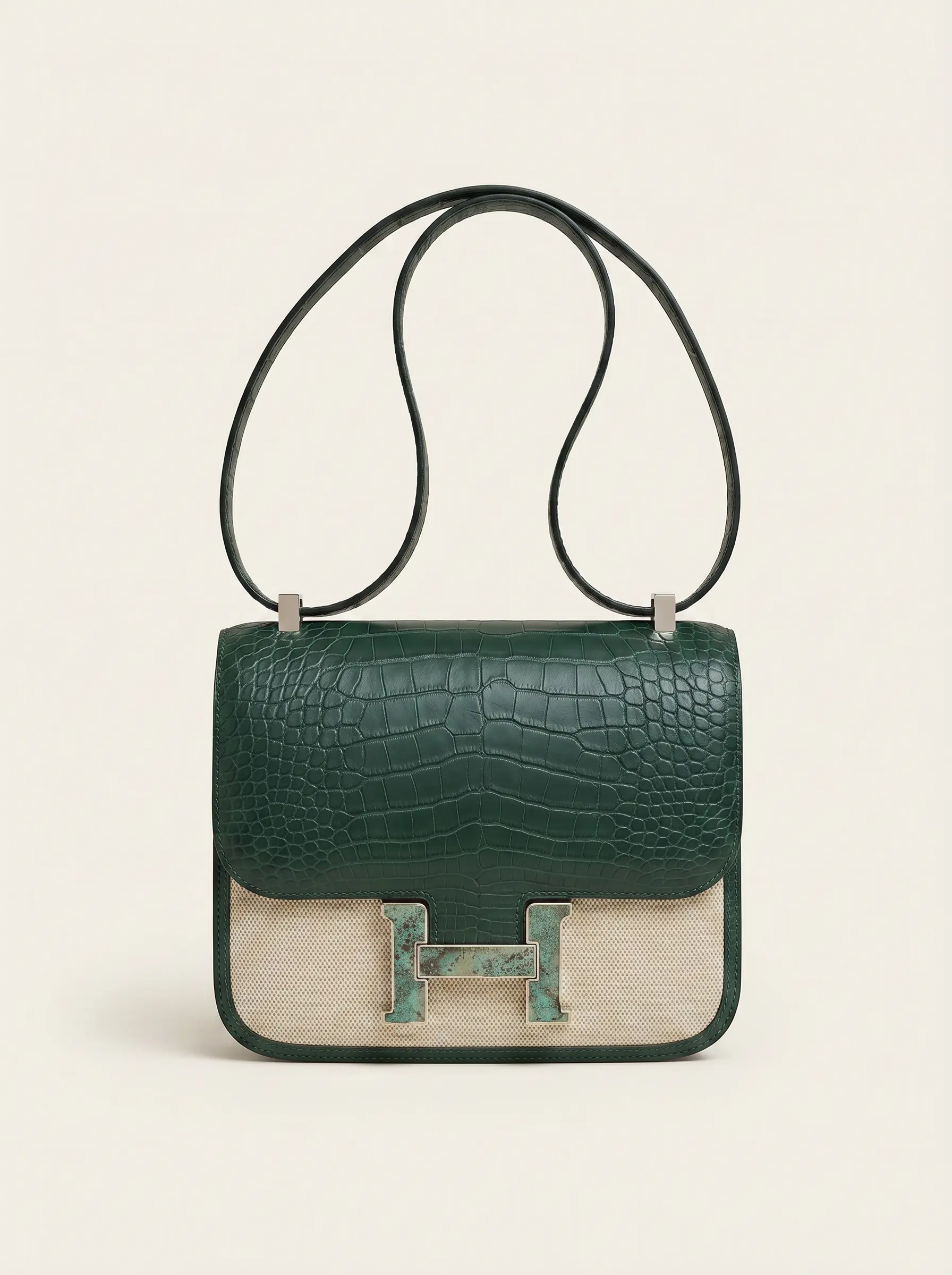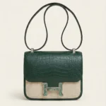 The Hermès Constance 20 Vert Cypress Crocodile PHW is a luxury handbag crafted from premium crocodile leather, defined by its structured silhouette and iconic clasp.