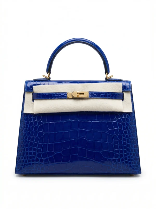 The Hermes Kelly Blue Electric Crocodile Gold Hardware Bag is one of the most striking and collectible interpretations of the iconic Kelly silhouette. Crafted in luxurious crocodile leather, this piece features the highly coveted Blue Electric color, known for its vibrant tone and rarity within the Hermès color palette.