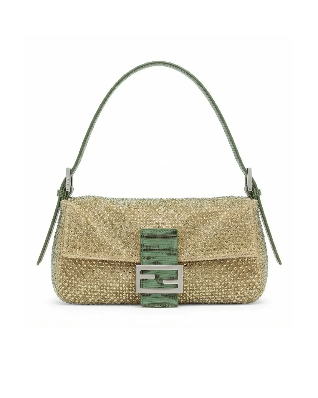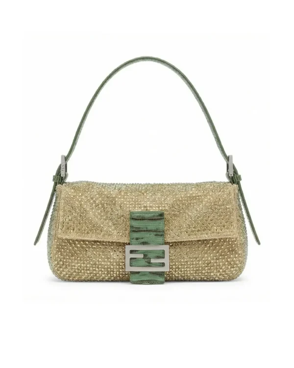 The Fendi Runway Fall Winter 2026 Baguette reinterprets the house’s iconic silhouette through elevated materials and runway-exclusive detailing. Unveiled during the seasonal presentation, this edition features a luminous woven metallic body complemented by a structured exotic leather strap and signature FF buckle.