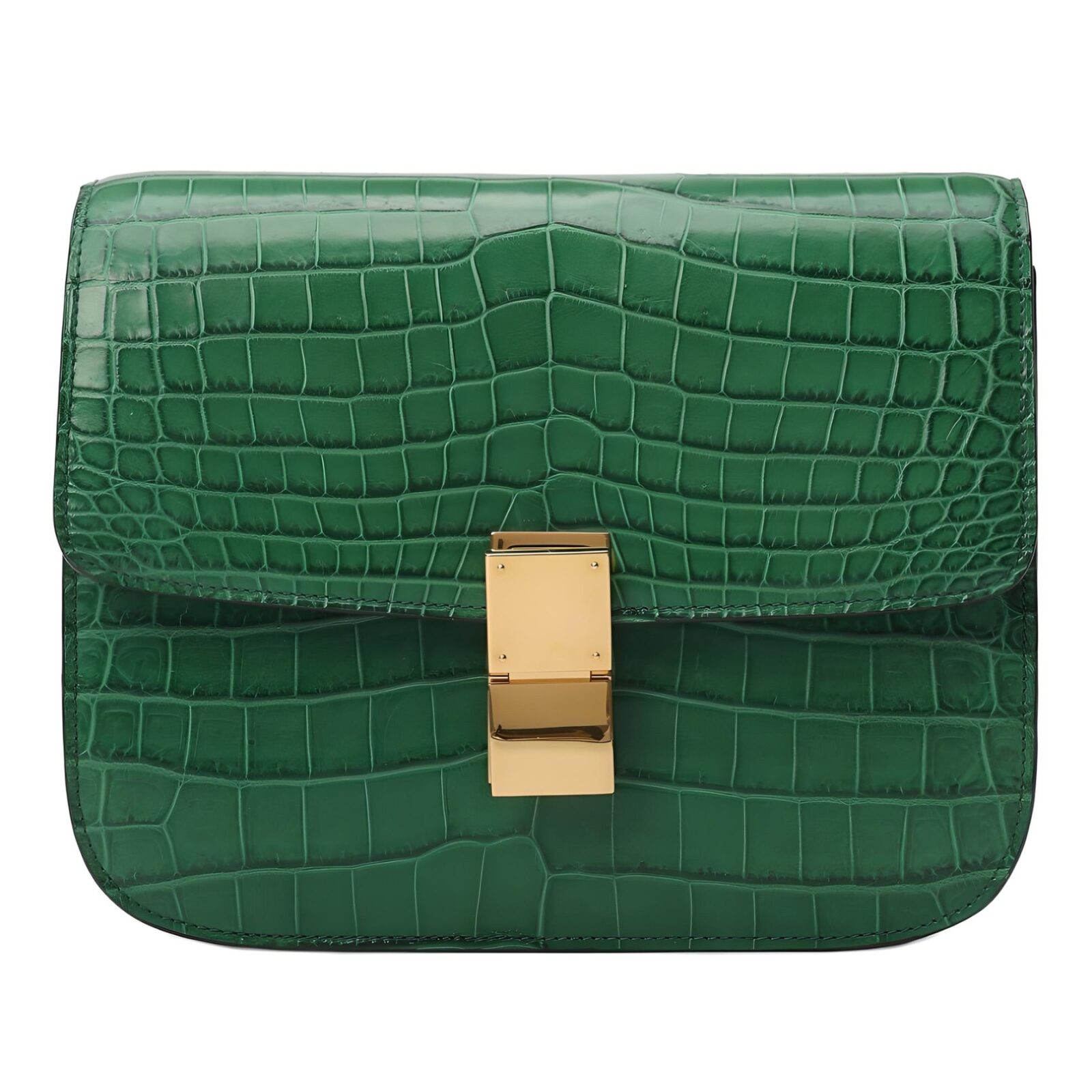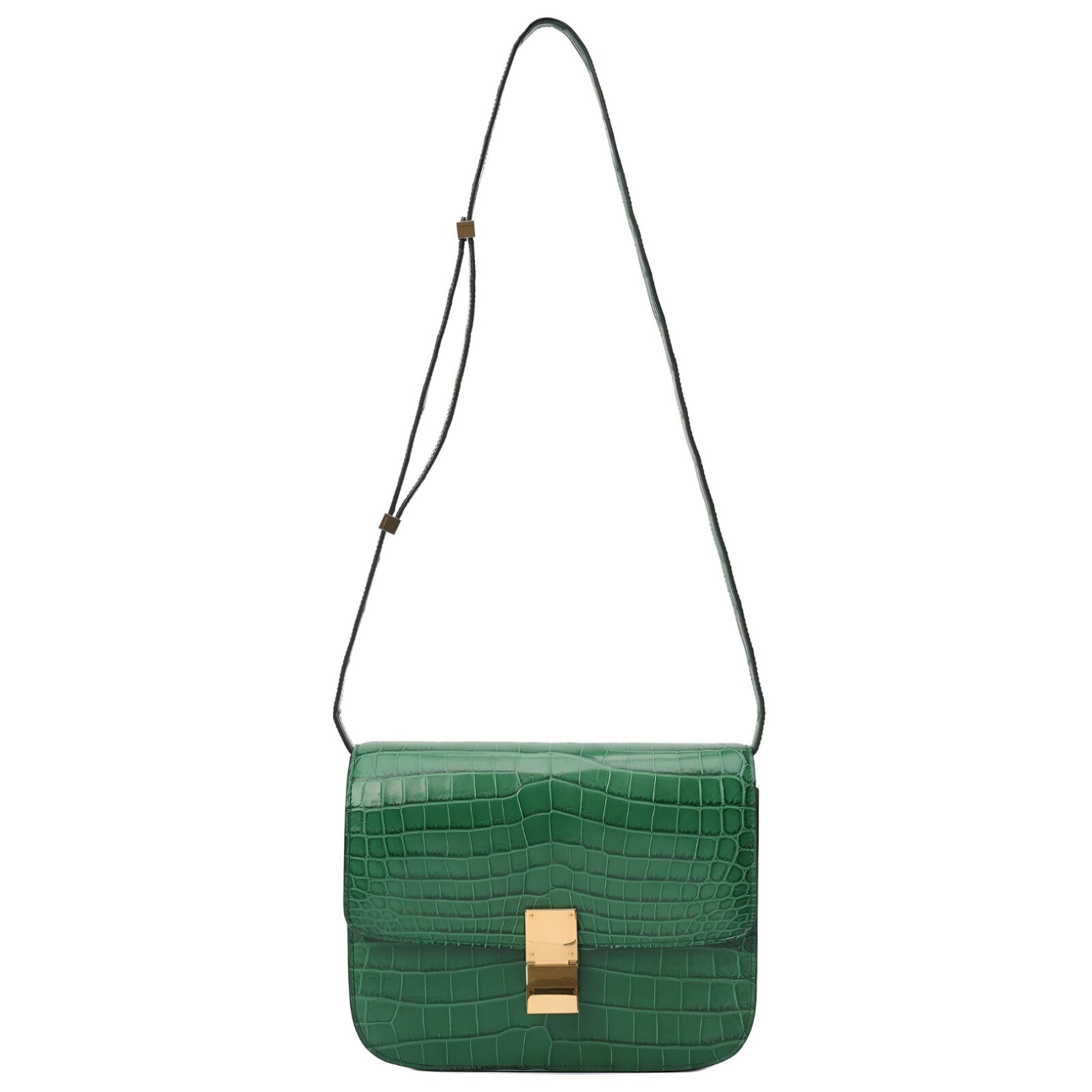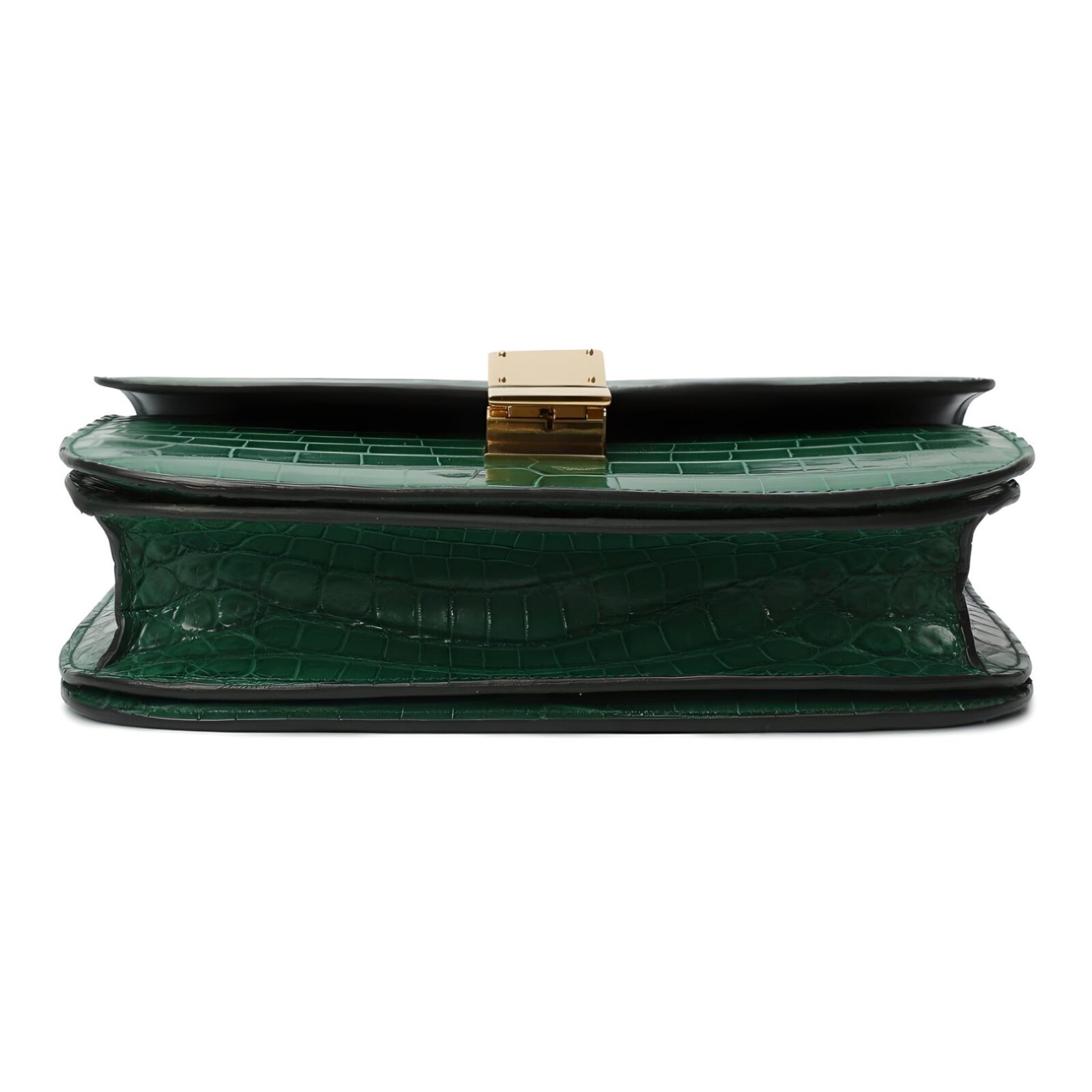 Celine green Box handbag with gold hardware in crocodile skin, Adjustable strap