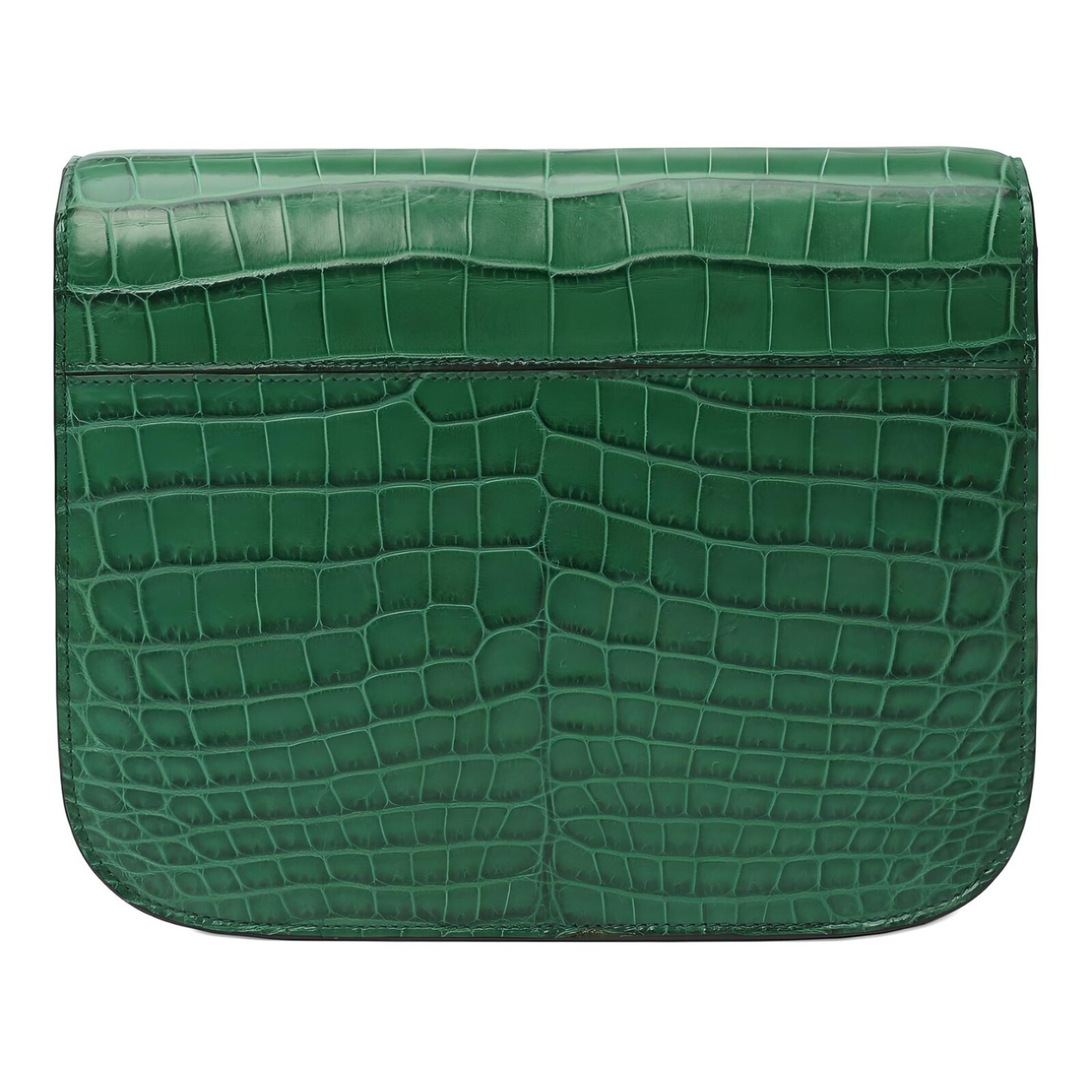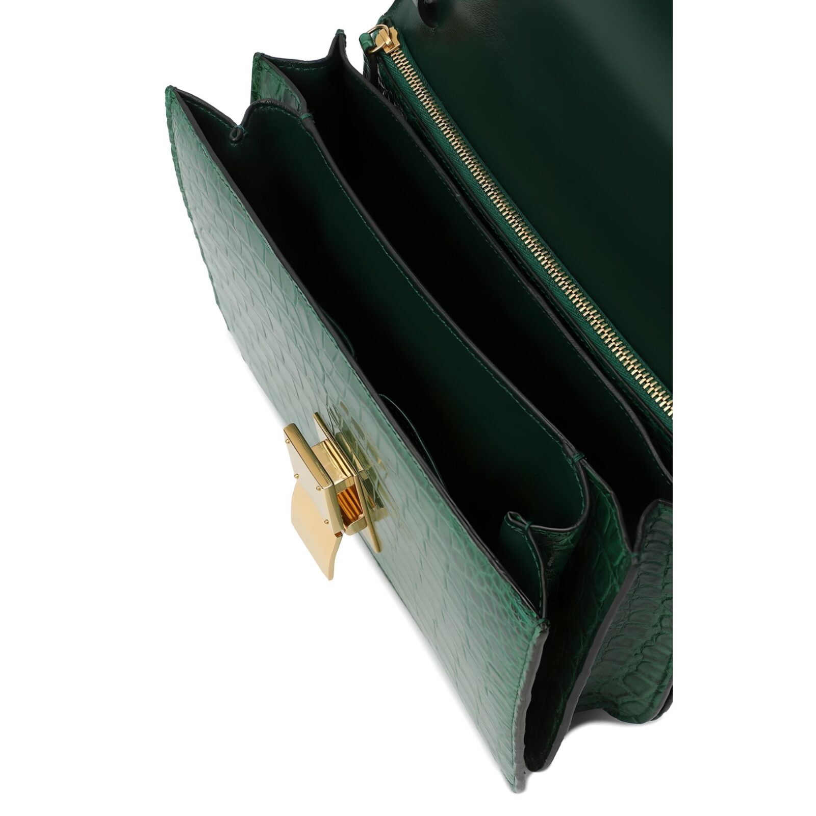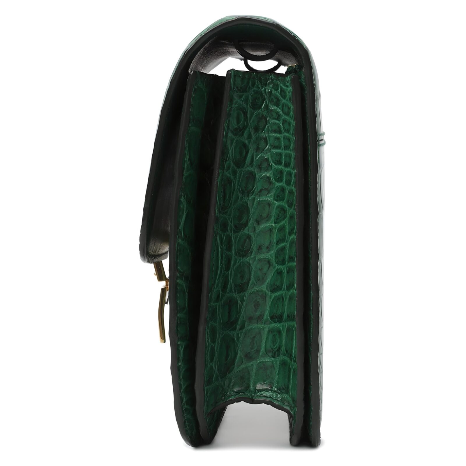 Celine green Box handbag with gold hardware in crocodile skin, Adjustable strap