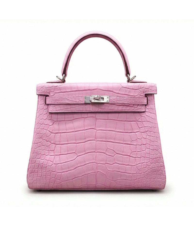 An exceptional Hermès Kelly crafted in rare pink crocodile leather, representing the pinnacle of French maison craftsmanship. The iconic structured silhouette, complemented by refined silver hardware, embodies heritage, discretion, and investment-grade luxury. Sourced and authenticated, this collector’s piece is designed for connoisseurs who understand rarity, provenance, and timeless value.