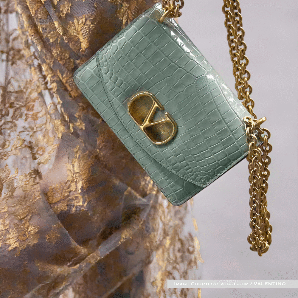 Discover the Valentino VLogo Runway Handbag 2026, now available for exclusive pre-order at So Wow Bag. This luxurious statement piece, crafted from premium crocodile-embossed leather in mint green, is accentuated by Valentino’s iconic gold VLogo and refined chain detailing. Designed for fashion connoisseurs, it embodies sophisticated elegance straight from the runway. Own the next season’s most coveted Valentino creation before it debuts.
